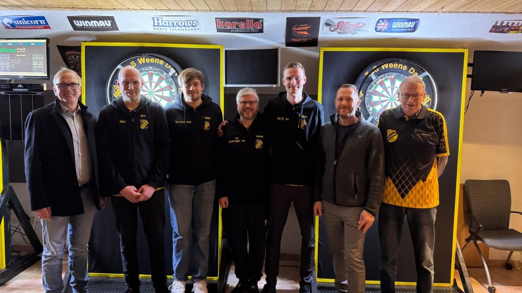 Hocherfreut zeigten sich die Darteer des TuS Weene mit der Vereinsspitze über die neuen Trainingsjacken. Diese wurden in erheblichem Umfang durch die Firmen Fahrschule Academy Kehrbach und JK Fahrzeigtechnik aus Aurich-Schirum finanziert.